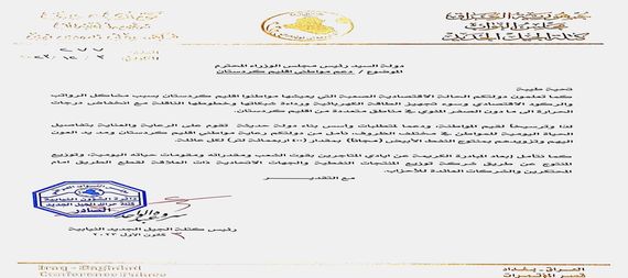 داعية الى رعاية مواطني اقليم كردستان ومد يد العون اليهم وتزويدهم بمنتوج النفط الأبيض (مجانا) بمقدار (٤٠٠) لتر لكل عائلة ، مع التأكيد على ضرورة إبعاد المبادرة الكريمة عن ايادي المتاجرين بقوت الشعب ومقدراته ومقومات حياته اليومية، وتوزيع المنتوج عن طريق شركة توزيع المنتجات النفطية والجهات الاتحادية ذات العلاقة لقطع الطريق امام المحتكرين والشركات العائدة للأحزاب.