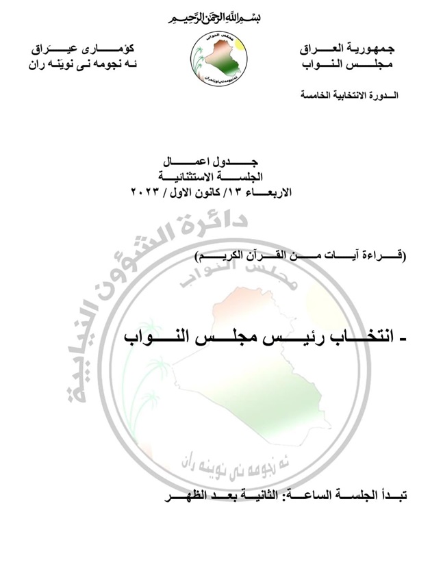 وجاء في وثيقة نشرتها الدائرة الإعلامية للمجلس، إن "جلسة انتخاب رئيس مجلس النواب ستعقد يوم الأربعاء المقبل في الساعة الثانية بعد الظهر".