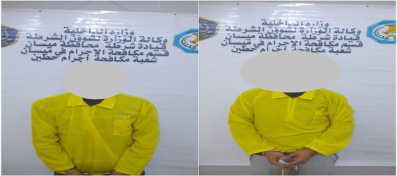 وقال مصدر امني :" ان المتهمين تم اعتقالهما لتسببهما بألحاق الأذى المتعمد بالعوائل الميسانية من خلال إطلاقهما للعيارات النارية في ساعات متاخرة من الليل ، مشيراً الى أتخاذ الأجراءات القانونية بحقهما أصوليا".