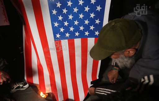 وقال مصدر صحفي ان الحشود التي تجمعت في ساحة التحرير رفعت اعلام المقاومة الاسلامية في العراق و اعلام كتائب حزب الله وبعض الفصائل الاسلامية العراقية المسلحة ضمن "محور المقاومة" نصرة لجماعة أنصار الله الحوثيين، مع حضور احدى الشخصيات الممثلة عن الحوثيين للتظاهرة مع مطالبات بإخراج القوات الامريكية من العراق، كما تم رفع الاعلام الفلسطينية في ظل الحرب الدائرة بين إسرائيل وحركة حماس منذ السابع من تشرين الأول 2023 وحتى الان.