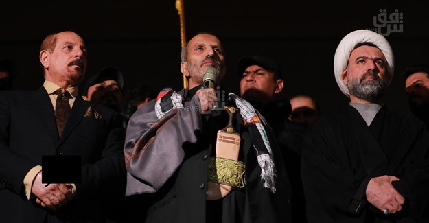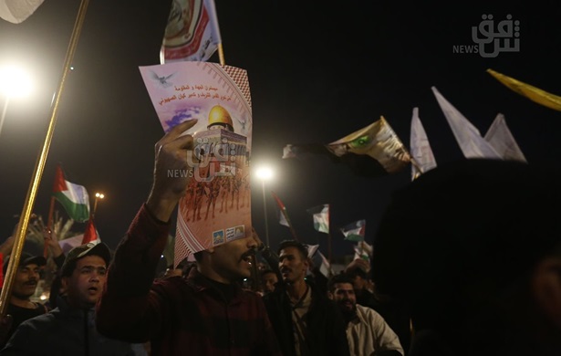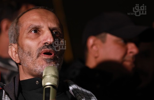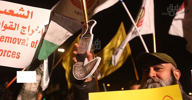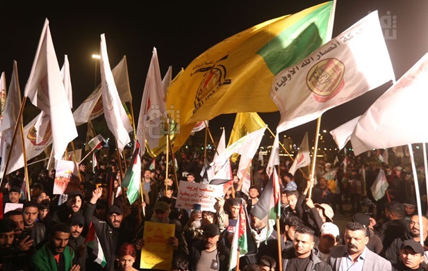 شهدت ساحة التحرير، وسط العاصمة بغداد، اليوم السبت، تظاهرة ليلية نصرة لاخوتنا في اليمن وفلسطين وسط حضور ممثل عن حركة انصار الله اليمنية في التظاهرة.
