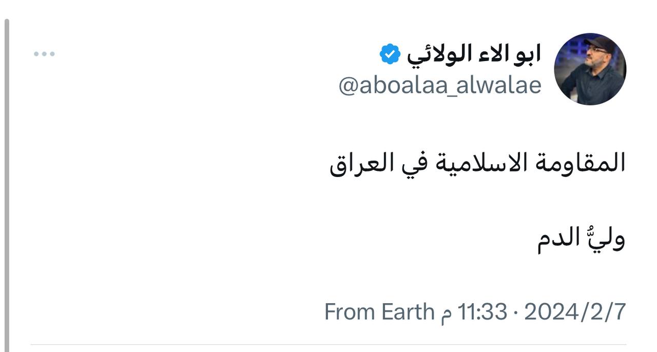 ابو الاء الولائي : المقاومة الاسلامية في العراق هي ولي الدم