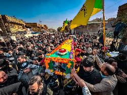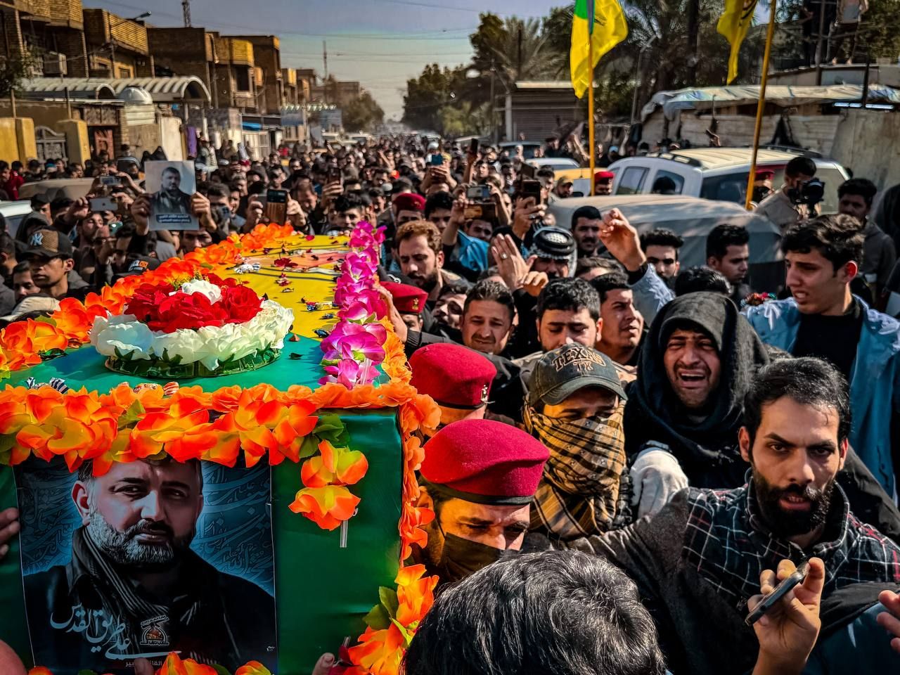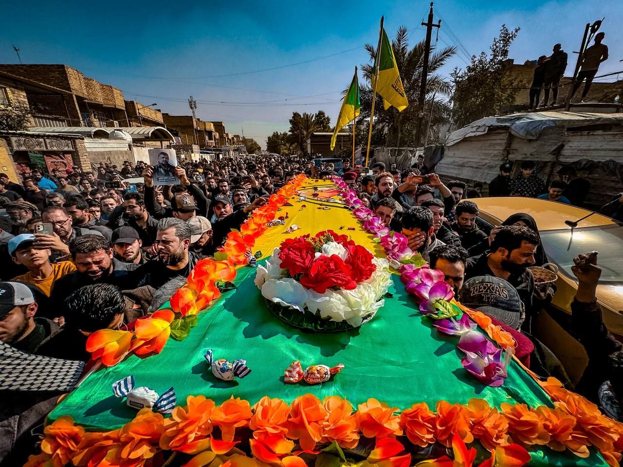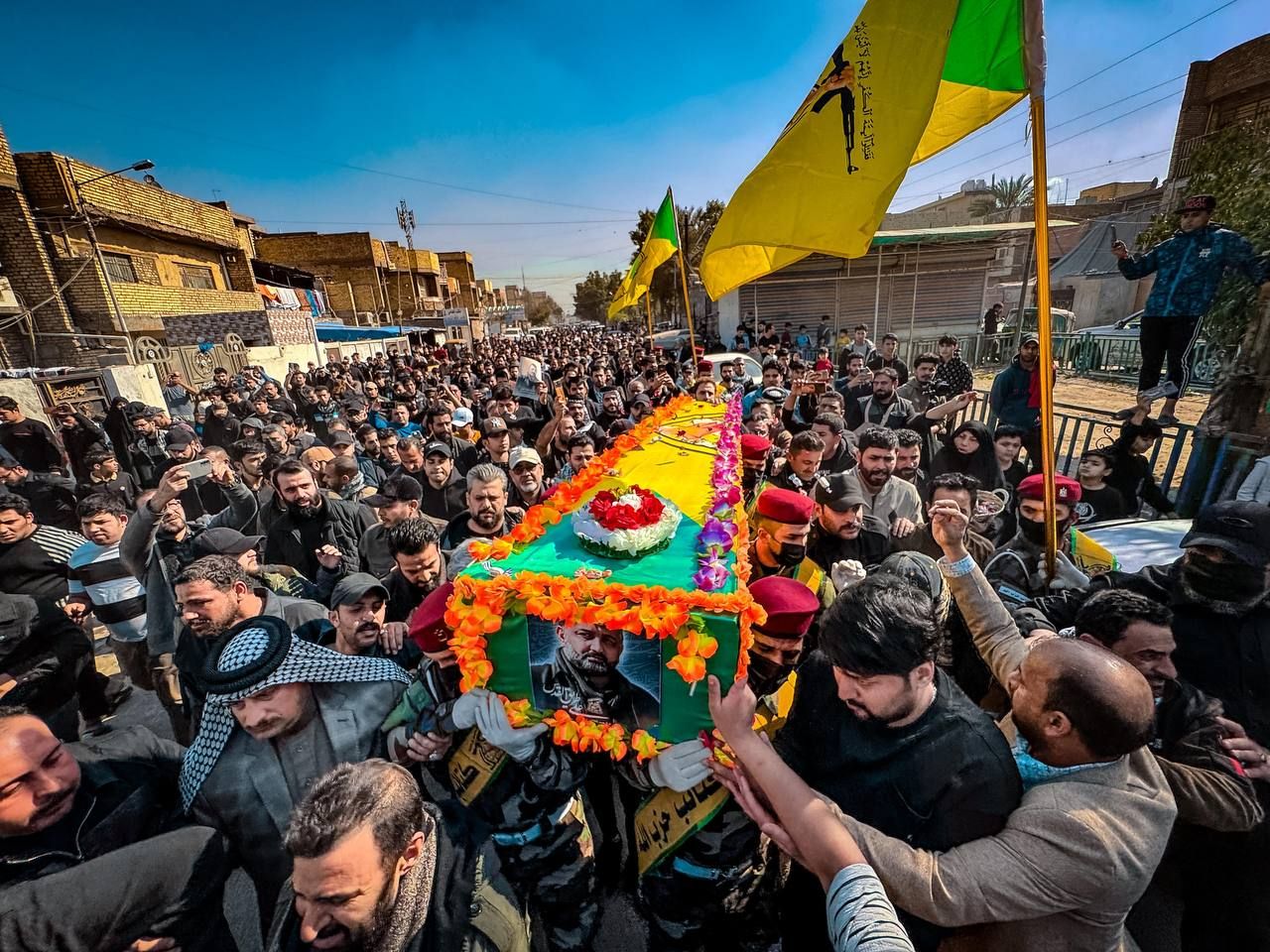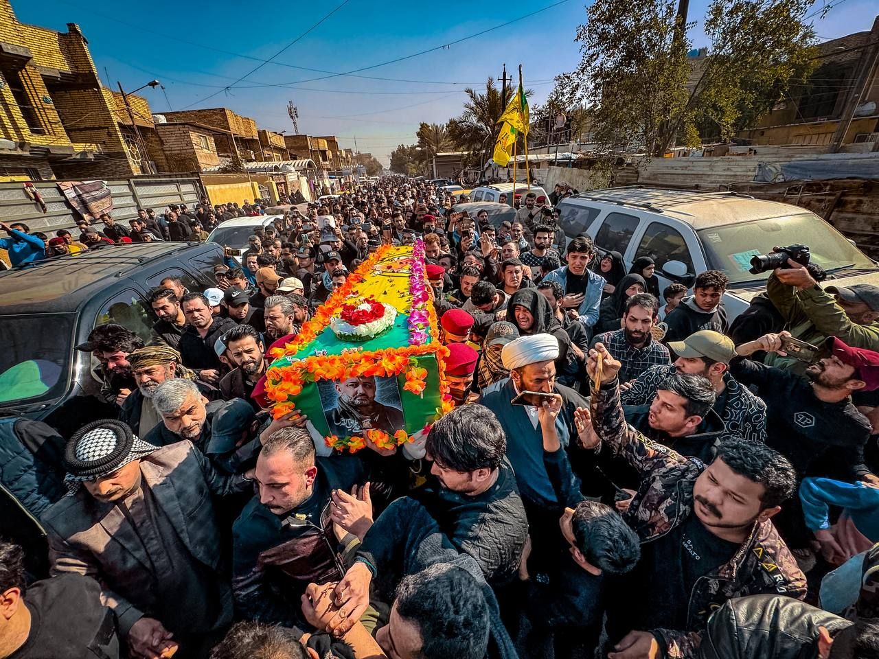 شيع المئات جثمان القيادي في كتائب حزب الله المجاهدة البطلة الشهيد القائد ابو باقر الساعدي الذي استشهد يوم امس اثر ضربة جوية امريكية غادرة جبانة في بغداد