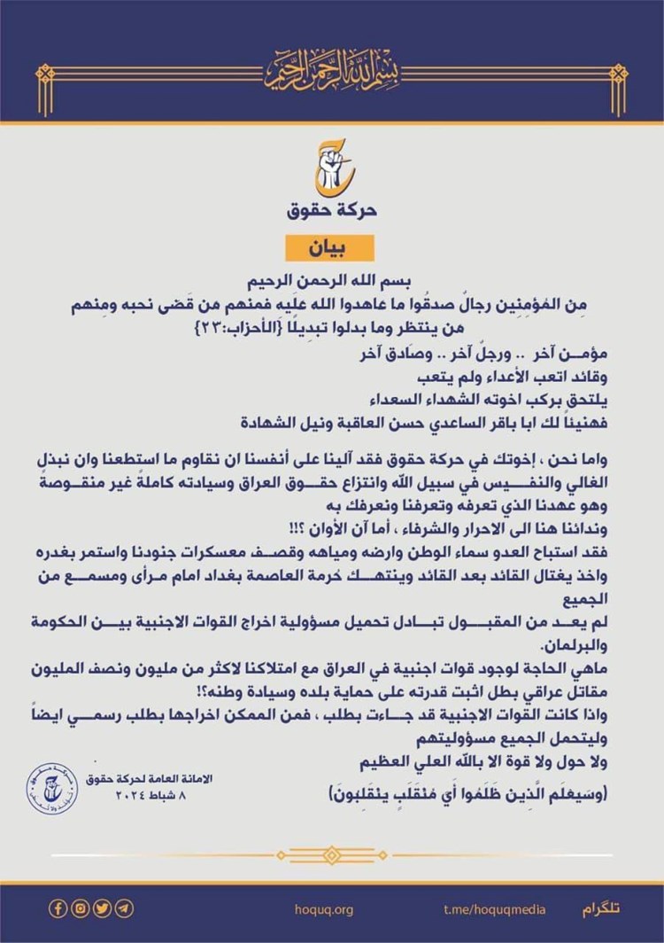 العسكري مخاطباً سافايا: العراق أكبر منكم ..وتهاوى فوق ترابه جيشكم المحتل