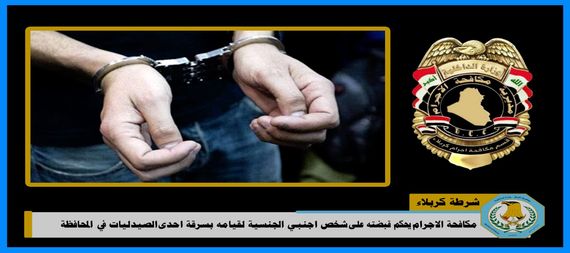 القت مفارز مكافحة الإجرام في محافظة كربلاء المقدسة القبض على شخص اجنبي الجنسية قام بسرقة مبلغ مالي من احدى الصيدليات .