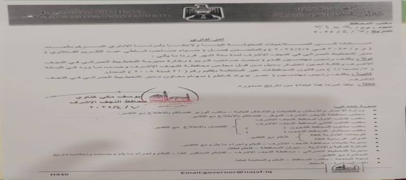 أظهرت وثيقة رسمية صادرة بتوقيع محافظ النجف يوسف گناوي فصل مدير دائرة التخطيط العمراني بالمحافظة وتعيين بديلا له .