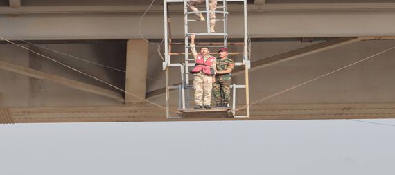 نفذ ضباط هيئة الحشد الشعبي، صنف القوت الخاصة الذين تخرجوا من دورة الكلية العسكرية الرقم (86) مع اقرانهم من ضباط وزارة الدفاع، اليوم السبت، فعالية "قفزة الثقة" التي اقامتها وزارة الدفاع لخريجي الكليات العسكرية من فوق جسر 14 رمضان وسط العاصمة بغداد