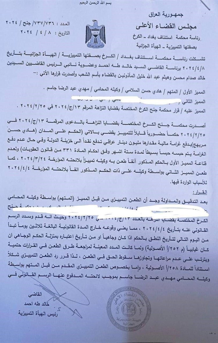 محكمة الكرخ تلغي تهمة بحق النائب هادي السلامي