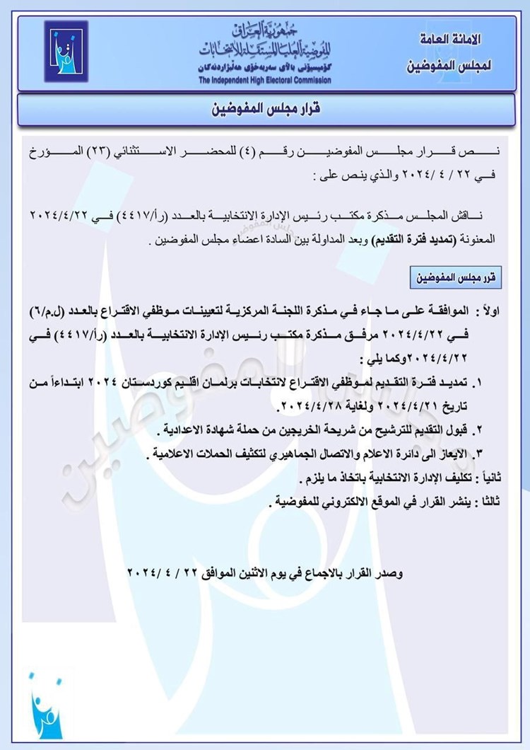 بالوثيقة.. تمديد التقديم لموظفي الاقتراع لانتخابات برلمان اقليم كردستان