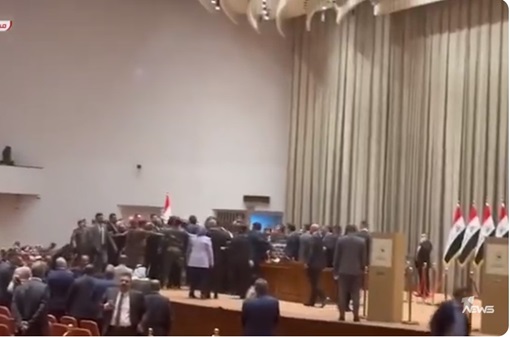 بالفيديو ... الشجار وتبادل اللكمات التي حصل في قبة البرلمان من قبل النواب السنة مع بعضهم