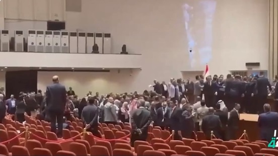 مشاهد جديدة للشجار الذي نشب بين النواب السنة والفوضى التي عمت قبة البرلمان اليوم بسبب تسمية رئيس برلمان جديد