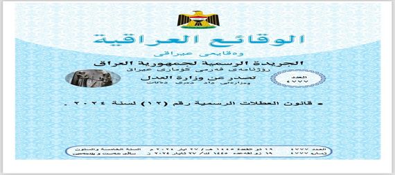 وقد صدر العدد 4777 من جريدة الوقائع العراقية ، وتضمن قانون العطلات الرسمية الرقم 12 لسنة 2024 .