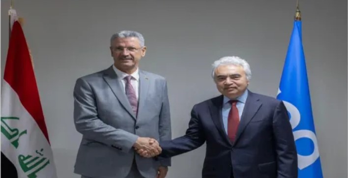 بحث وزير النفط حيان عبد الغني مع الرئيس التنفيذي للوكالة الدولية للطاقة فاتح بيرول افاق العلاقات والتعاون بين العراق والوكالة الدولية للطاقة.