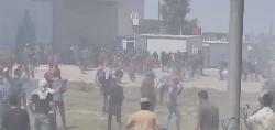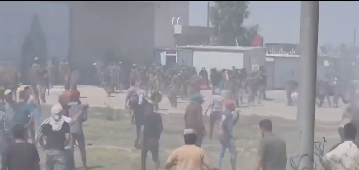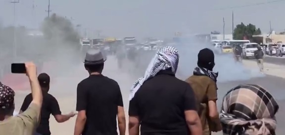 واظهرت مشاهد مصورة، تصادمات بين قوات مكافحة الشغب والمتظاهرين من أصحاب عقود 315 امام مقر شركة نفط ذي قار.