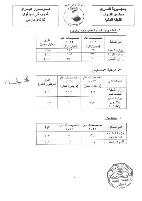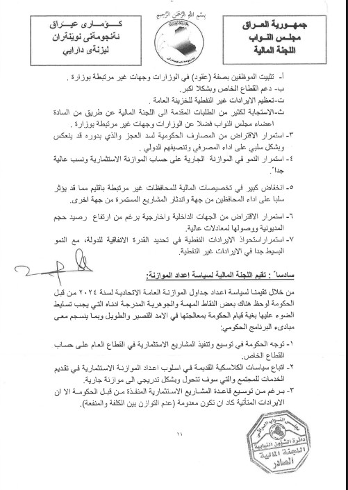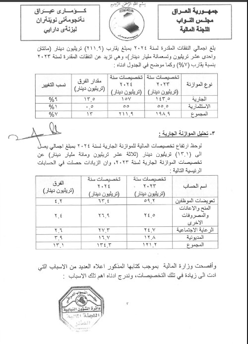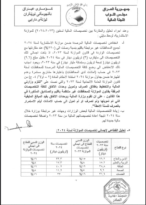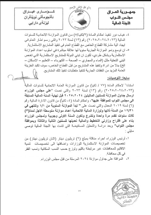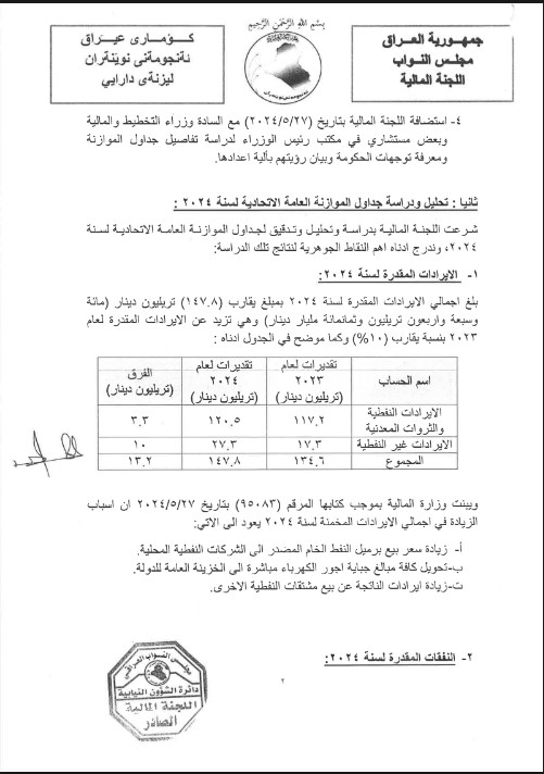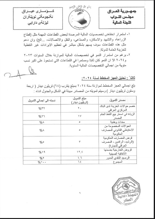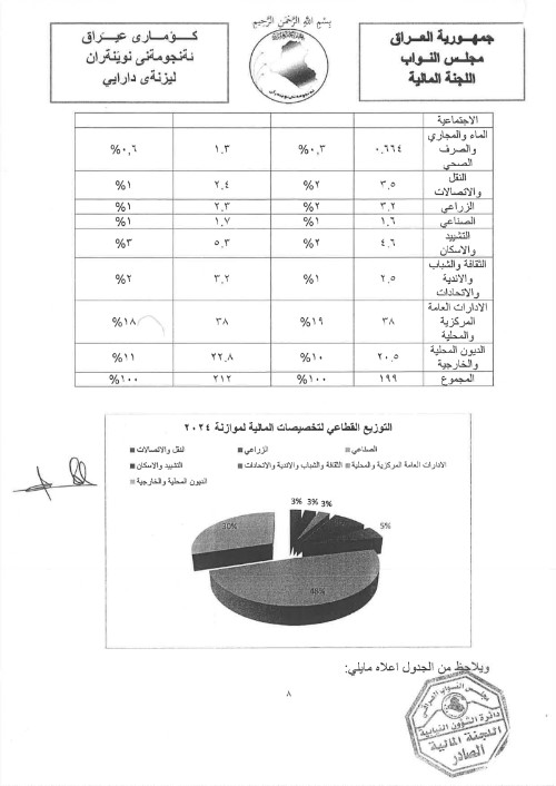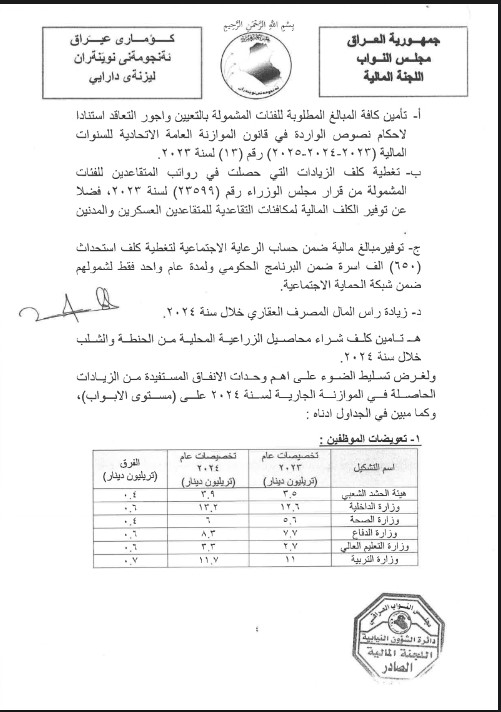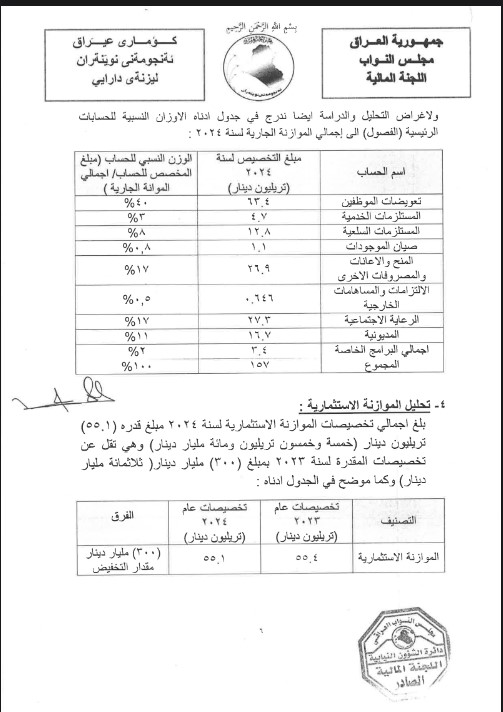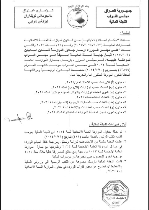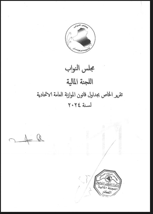 تقرير جداول قانون الموازنة العامة الاتحادية رقم (١٣) المعدل لسنة ٢٠٢٤ ومرفقاته جداول (أ/ب/ج/د/هـ و) التي صوت عليها مجلس النواب رسميا في جلسته التي عقدها اليوم الاثنين .