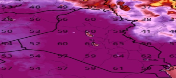 وتظهر الخارطة ان درجات الحرارة تحت الشمس ستكون 65 مئوية في مناطق جنوب شرق بغداد ومحافظة واسط، وتتراوح بين 60 و64 مئوية في وسط وجنوب العراق، بينما تبلغ بين 85 و52 مئوية في شمال شرق العراق.