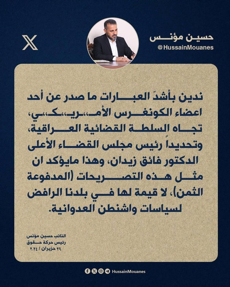 حركة حقوق تدين التعدي الامريكي على السلطة القضائية
