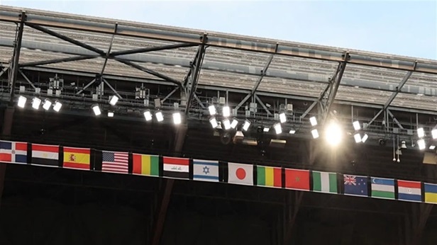 وخلال منافسات كرة القدم، تضع اللجنة المنظمة أعلام جميع المنتخبات الأولمبية المشاركة، وعددها 16، في أعلى الاستاد. ومما لفت النظر فورا، مجاورة العلم العراقي إلى جانب العلم الإسرائيلي، خلال جميع ملاعب كرة القدم.