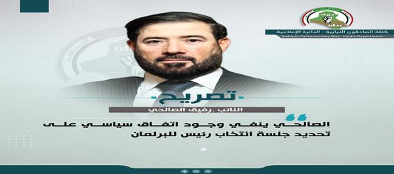 وقال الصالحي بحسب بيان الكتلة : "لغاية الآن، لا يوجد أي اتفاق سياسي أو نيابي داخل مجلس النواب بتحديد موعد لعقد جلسة انتخاب رئيس جديد لمجلس النواب".