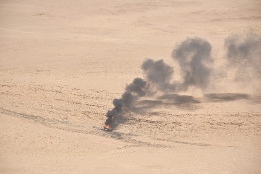 وقالت الرئاسة في بيان إن "ابطال طيران الجيش نفذوا ضربة جوية دقيقة استهدفت عجلة تابعة للعناصر الإرهابية في (وادي الحزيمي) جنوب الطريق الدولي ضمن قاطع فرقة المشاة الخامسة لعمليات الانبار".