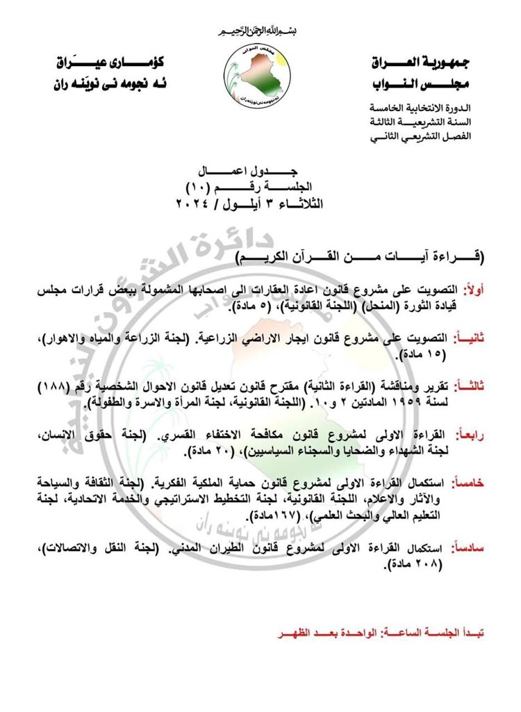 جدول أعمال جلسة البرلمان ليوم غد الثلاثاء