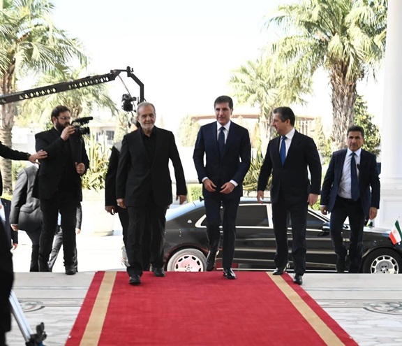 وقال المصدر"، إن "رئيس إقليم كردستان نيجيرفان بارزاني كان في استقبال الرئيس الإيراني مسعود بزشكيان".
