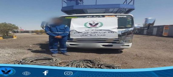 القت مفارز شرطة الطاقة القبض على متهم قام بسرقة كابلات كهرباء من داخل حقل الرميلة النفطي الجنوبي في محافظة البصرة.