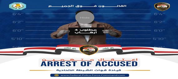 وذكرت قيادة الشرطة الاتحادية في بيان :" ان القبض على المتهم تم في نقطة تفتيش (جسر شميط) في كركوك لورود اسمه ضمن قوائم المطلوبين للقضاء، و تمت احالته الى الجهات المختصة".