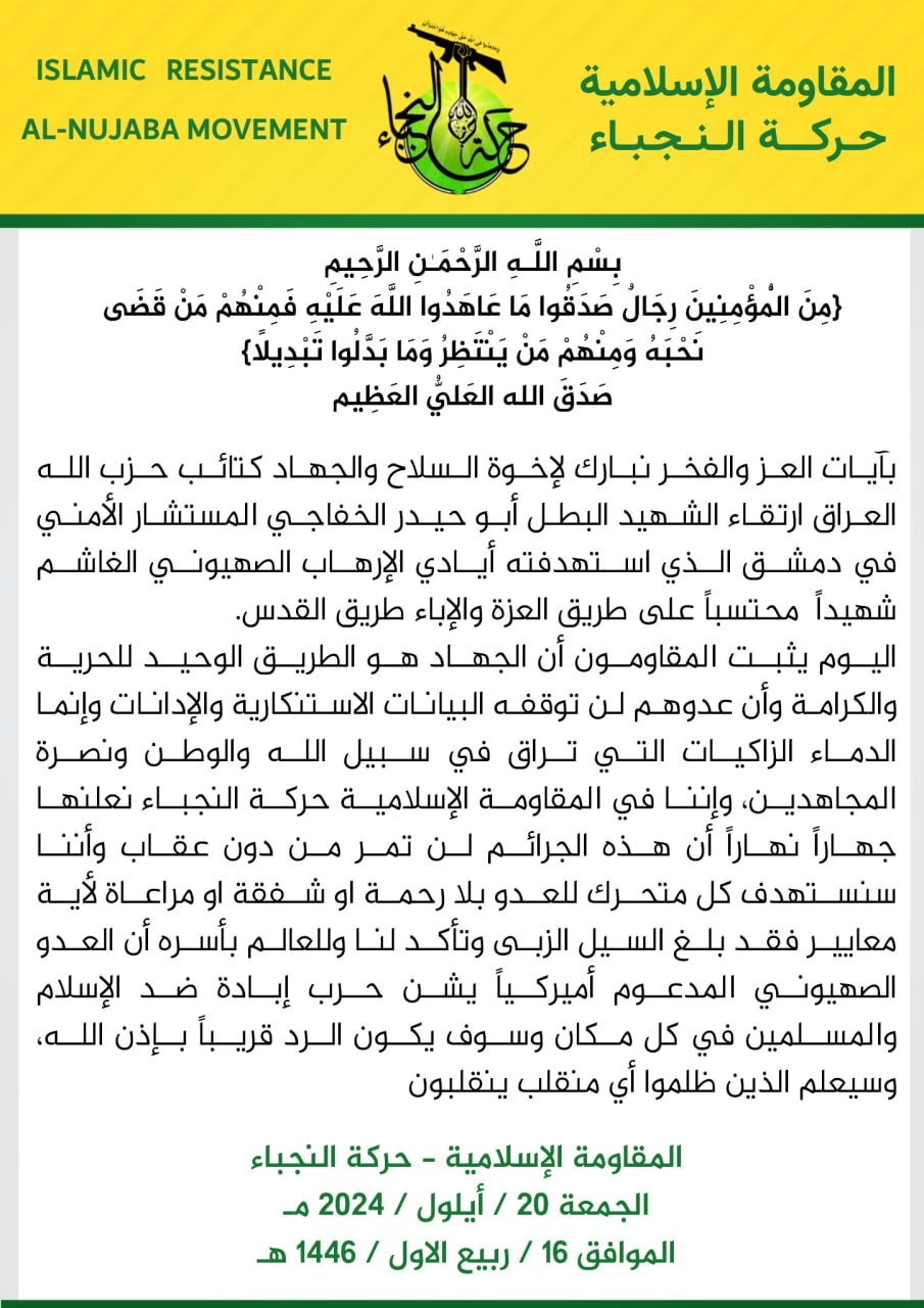 بيان "غاضب" لحركة "النجباء" بشأن استشهاد قيادي في "كتائب حزب الله"