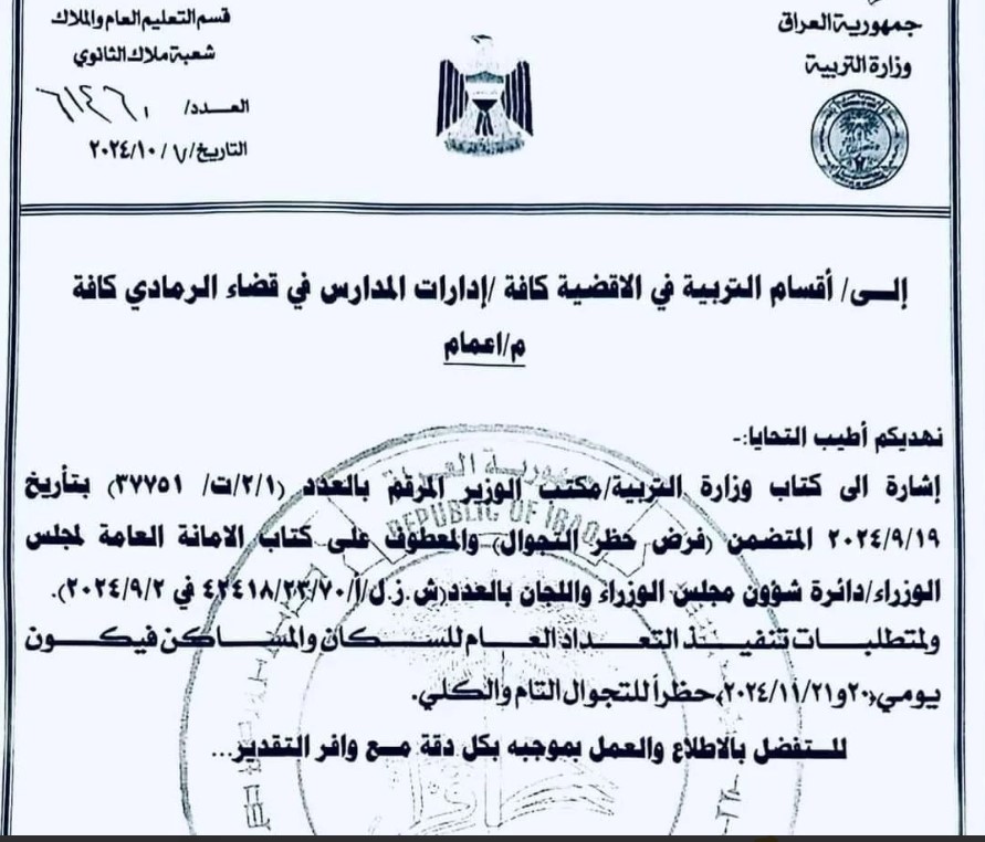 بالوثيقة .. التربية تبلغ ادارات المدارس بشأن حظر التجوال اثناء التعداد السكاني
