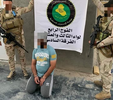 وذكرت القيادة في بيان لها ان قوة من فرقة المشاة "السادسة" بإسناد الوكالات الاستخبارية وبالتنسيق مع قسم استخبارات وامن القيادة، القت القبض على ارهابي (داعشي) مطلوب وفق المادة ٤/١ ارهاب بعد رصد تحركاته ومكان تواجده ضمن قاطع المسؤولية في قضاء الطارمية شمال العاصمة وتسليمه الى الجهات المختصة لإكمال الاجراءات القانونية بحقه