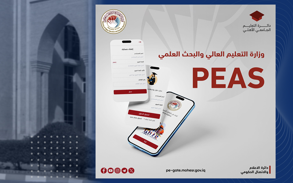 أعلنت وزارة التعليم العالي، اليوم الاثنين، إطلاق مرحلة التقديم الإلكتروني المركزي لتسجيل خيارات القبول في الجامعات والكليات الأهلية للعام الدراسي 2025/2024، إذ ذكرت الوزارة في بيانها، انه "عملا بضوابط وسياقات التقديم فإن عملية ملء استمارات التقديم الإلكترونية تتيح للطالب أربعة خيارات فقط ضمن القناة العامة وخيارين إضافية عند التقديم إلى القنوات الخاصة وإن التقديم يكون عن طريق تحميل التطبيق PEAS ويستمر التقديم الى غاية السبت الموافق 2024/11/16".