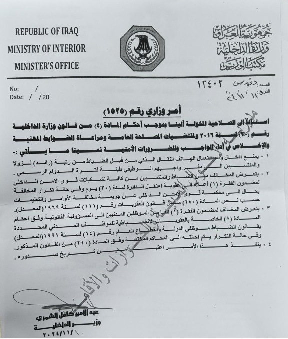 وزير الداخلية يمنع ادخال واستخدام الهواتف الذكية اثناء الدوام للمنتسبين من رتبة رائد فما دون