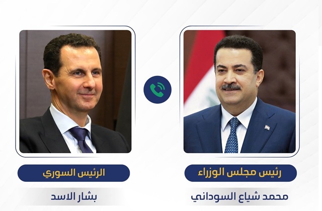 وقالت الرئاسة السورية في بيان، إن "الأسد بحث في اتصال هاتفي مع رئيس الوزراء العراقي محمد شياع السوداني التطورات الأخيرة والتعاون المشترك بين البلدين في مجال مكافحة الإرهاب، وعدداً من القضايا العربية والدولية".