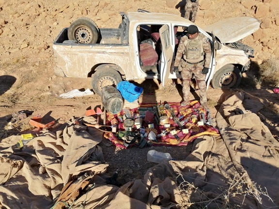 وأضاف البيان "عثر الشجعان في جهاز مكافحة الإرهاب على (عجلتين متروكتين ودراجة نارية و5 عبوات ناسفة وقاذفة RBG7 مع 3 صواريخ قاذفة و4 مساطر تفجير و8 صواعق تفجير) فضلا عن مواد لوجستية وفنية مختلفة"، مشيرا الى "التعامل مع المواد المضبوطة وفق السياقات المعتمدة".