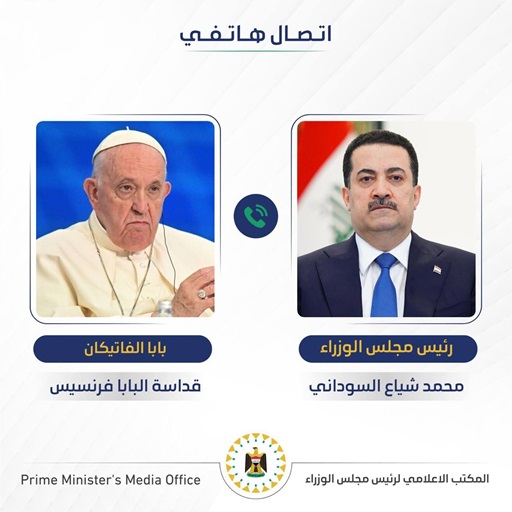تلقى رئيس مجلس الوزراء السيد محمد شياع السوداني، اليوم الخميس، اتصالاً هاتفياً من بابا الفاتيكان قداسة البابا فرنسيس، حيث وجه الدعوة له للمشاركة في قمة قادة العالم لحقوق الأطفال، التي ينظمها الفاتيكان في شهر شباط المقبل، بمناسبة يوم الطفل العالمي.