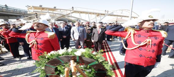 وضع رئيس الجمهورية عبد اللطيف جمال رشيد اكليلا من الزهور على نصب الكرد الفيلية في محافظة واسط .