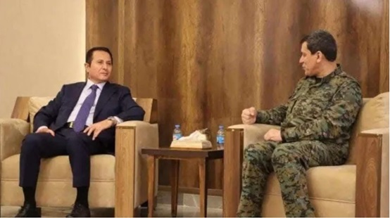 اجتمع حميد دربندي ممثل رئيس الحزب الديمقراطي الكردستاني مسعود بارزاني، اليوم الاثنين، بقائد قوات سوريا الديمقراطية مظلوم عبدي.
