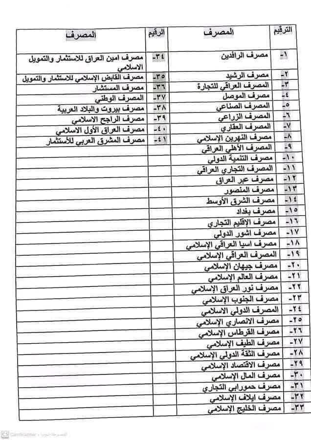 هذه لائحـة بالمصارف المخولة رسميا بايداع مبالغ بيع وشراء العقارات السكنية ، وفقا لضوابط البنك المركزي العراقي .