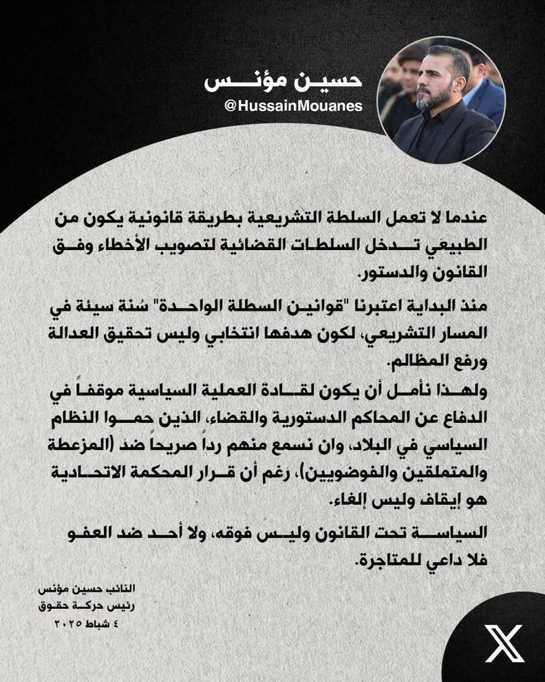 النائب حسين مؤنس يصف المتهجمين على القضاء بالمزعطة والمتملقين والفوضويين
