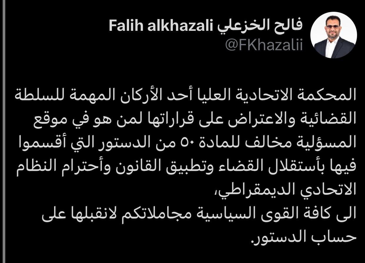 النائب فالح الخزعلي : المحكمة الاتحادية العليا أحد الأركان المهمة للسلطة القضائية
