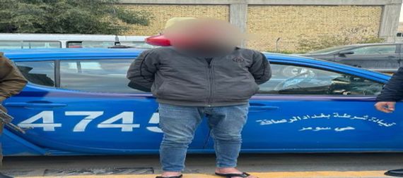 القت قوات قيادة شرطة الرصافة القبض على محتال يرمي نفسه امام سيارات المواطنين ، لاخذ مبالغ مالية منهم.