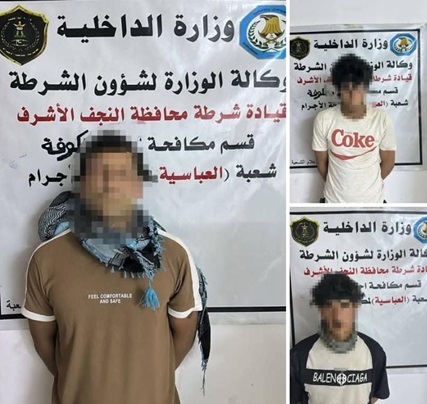 أعلنت قيادة شرطة محافظة النجف الاشرف، اليوم الثلاثاء (1 نيسان 2025)، عن إلقاء القبض على عصابة متخصصة بسرقة الدور السكنية ضمن ناحية العباسية في محافظة النجف.
