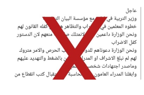 وقال المكتب الإعلامي في وزارة التربية في بيان إن "ما تناولته مواقع التواصل الاجتماعي وبعض الصفحات الكاذبة حول مقابلة الوزير إحدى المؤسسات التربوية خبر مزيف وعار عن الصحة".
