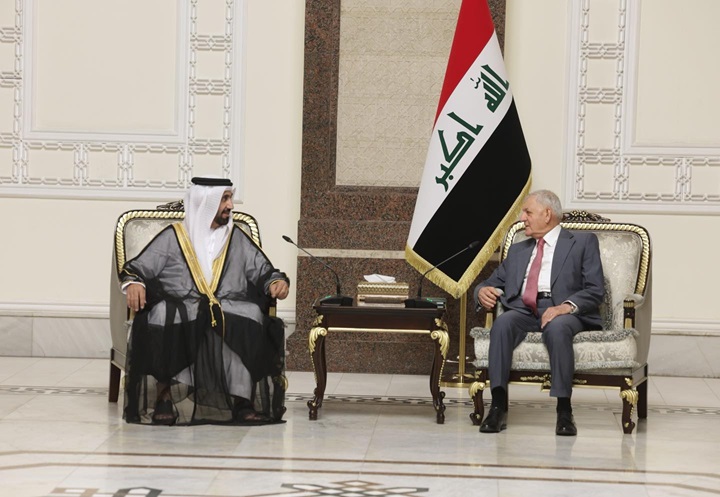 وذكرت الدائرة الإعلامية لرئاسة الجمهورية في بيان" أن "رئيس الجمهورية استقبل اليوم الأحد، في قصر بغداد، رئيس البرلمان العربي محمد أحمد اليماحي، والوفد البرلماني المرافق له".