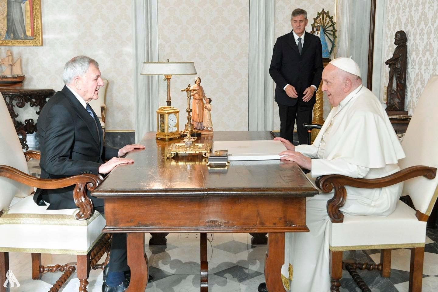 قدم رئيس الجمهورية، عبد اللطيف جمال رشيد، اليوم الاثنين، التعازي بوفاة البابا فرنسيس، وذكر رشيد في تدوينة له على منصة (إكس)، "ببالغ الحزن، تلقينا نبأ وفاة قداسة البابا فرنسيس، الذي ترك بصمة لا تُنسى في التمسك بالمواقف الإنسانية الرافضة للحروب والعنف، والداعية إلى السلام والتعايش بين جميع الشعوب".