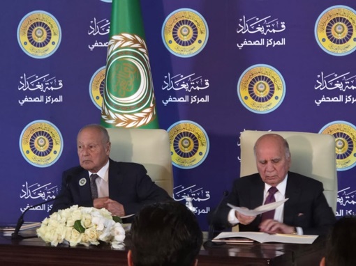 وأكد أبو الغيط في مؤتمر صحفي مشترك مع وزير الخارجية فؤاد حسين عقب انتهاء القمتين العربية والتنموية، أن "ما شهدناه في بغداد يعكس تعافيها"، مشيراً إلى أن "العراق هو الدولة الأولى التي تترأس القمتين السياسية والاقتصادية".
