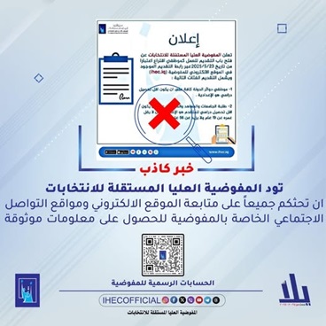 وقالت المفوضية في بيان مقتضب إن "المفوضية تحثكم جميعاً على متابعة الموقع الالكتروني ومواقع التواصل الاجتماعي الخاصة بها للحصول على معلومات موثوقة".