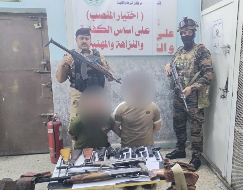 وذكرت القيادة في بيان أنه "ضمن عملياتها المستمرة لملاحقة تجار السلاح وتعزيز الأمن في المحافظة، تمكنت قوة مشتركة من قسم شرطة القبلة، وبإسناد من شعبة استخبارات القبلة وقوة من الفوج الثالث طوارئ، من الإطاحة بمتهمين اثنين بتجارة الأسلحة، وذلك عقب ورود معلومات استخبارية دقيقة واستحصال الموافقات القانونية".