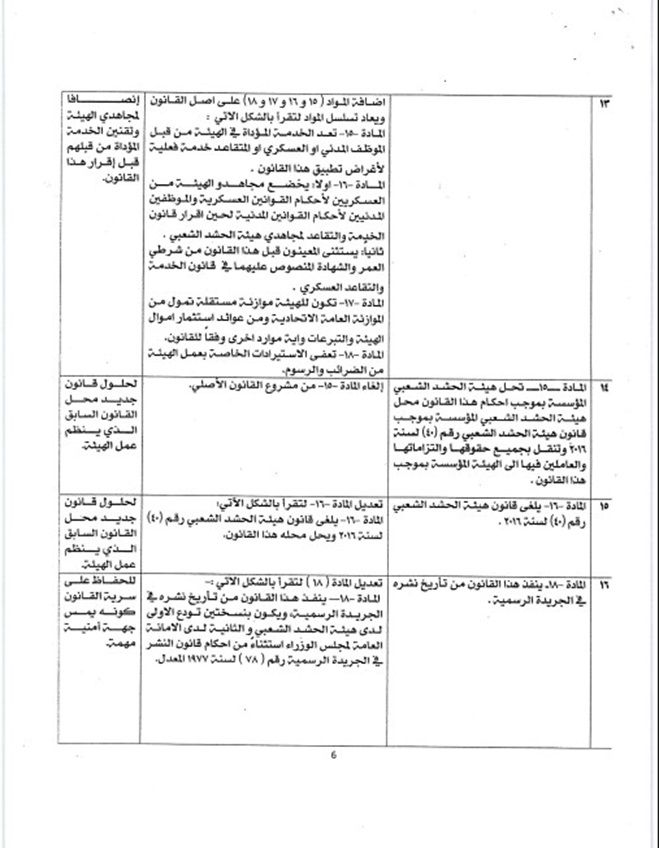 نص مشروع قانون هيئة الحشد الشعبي